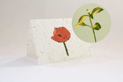 These cards, with a print of my watercolour illustrations, are printed on paper with flower seeds in it. You can write a message on the paper and send it like a normal card. But there's more: you can put the card in a flowerpot with soil, and something nice will bloom! Isn't that a wonderful gesture to someone: a green message that comes alive!